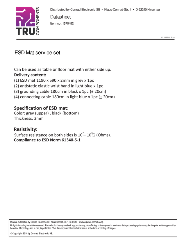 Zestaw maty stołowej ESD TRU COMPONENTS ESDM-1190BG 1570452 (D x S x W) 1190 x 590 x 2 mm
