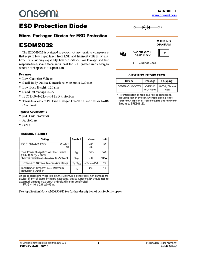 3.3 V Bidirectional ESD Protection Diode in X4DFN (0201)