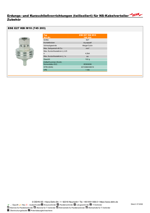 DEHN 745203 ESE E27 KBI M10 Wkładka śruby uziemiającej 1 szt.