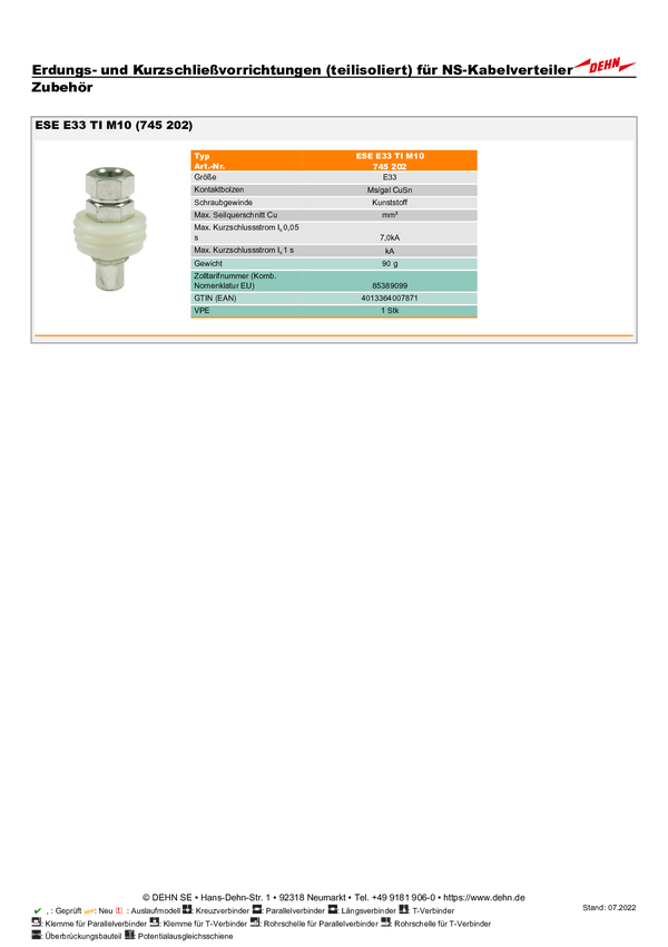 DEHN 745204 ESE E33 KBI M10 Wkładka śruby uziemiającej 1 szt.