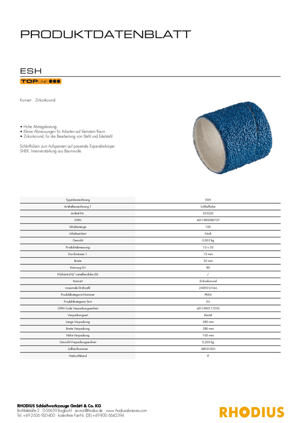 Papier ścierny tuleja, zestaw Rhodius ESH 305219 100 szt.