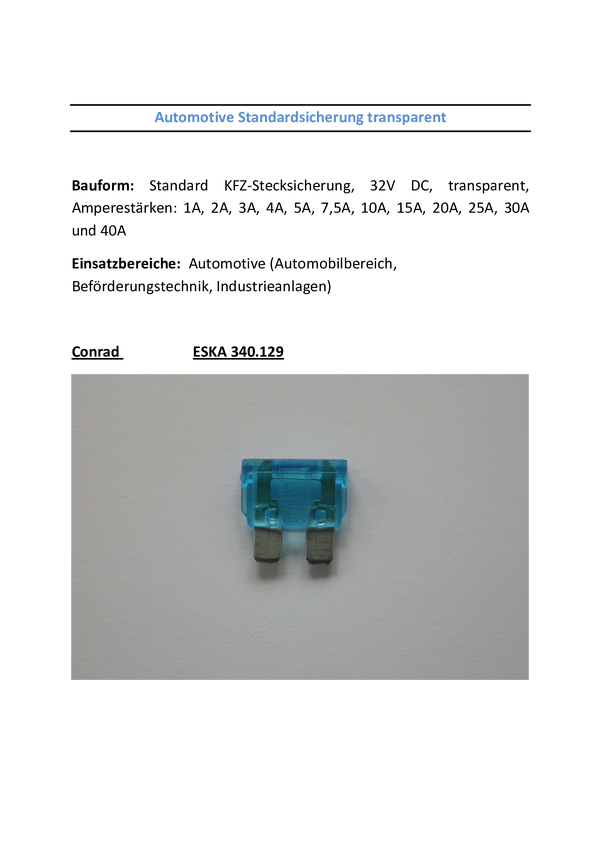 Bezpiecznik nożowy ESKA 340126 340.126, 12 V - 32 V, 7.5 A, 1 szt.