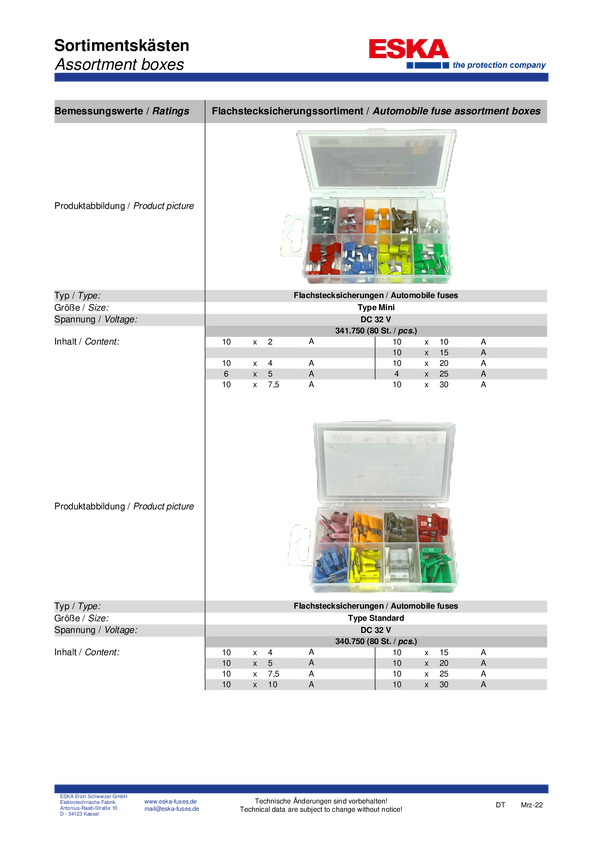 Bezpiecznik nożowy samochodowy ESKA 340.750, 32 V, 4 A - 30 A, 80 szt.