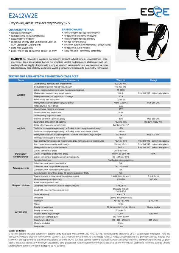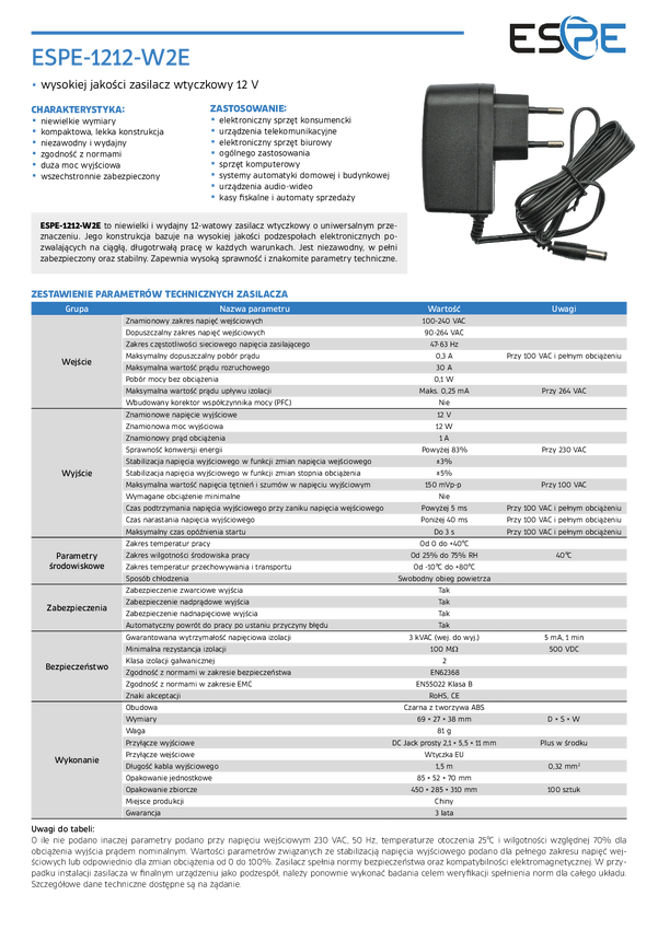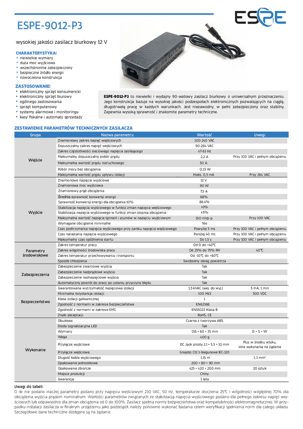 Zasilacz desktop ESPE 12V 7,5A 90W | ESPE-9012-P3