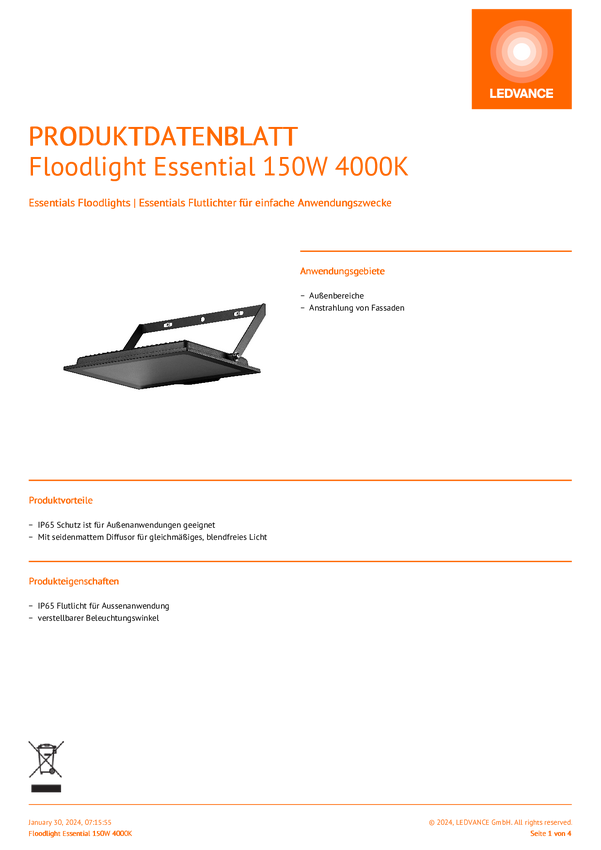 Reflektor LED LEDVANCE FL Essential 4058075831490 150 W 15000 lm IP65