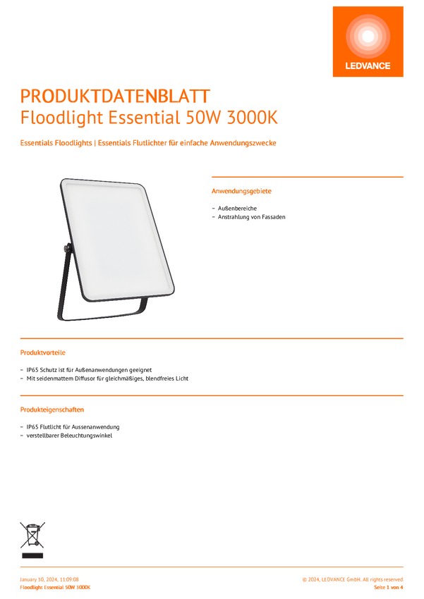 Reflektor LED LEDVANCE FL Essential 4058075768314 30 W 2550 lm IP65