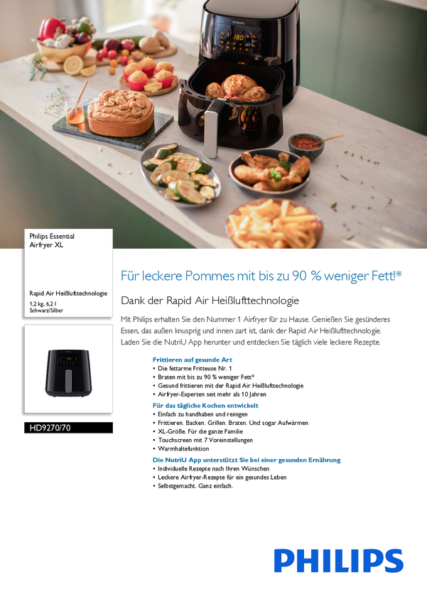 Philips Home Essential XL HD9270/70 Frytkownica 6.2 l 2000 W programowana temperatura, z funkcją timera, z wyświetlaczem