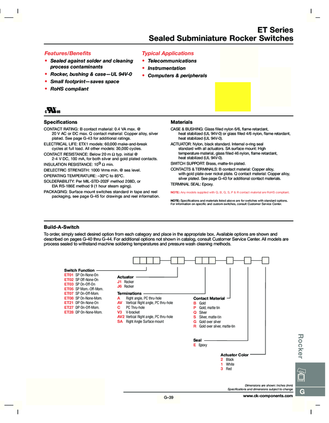 Switch Rocker ON None ON SPDT PC Pins Curved Rocker 20VAC 20VDC 0.4VA