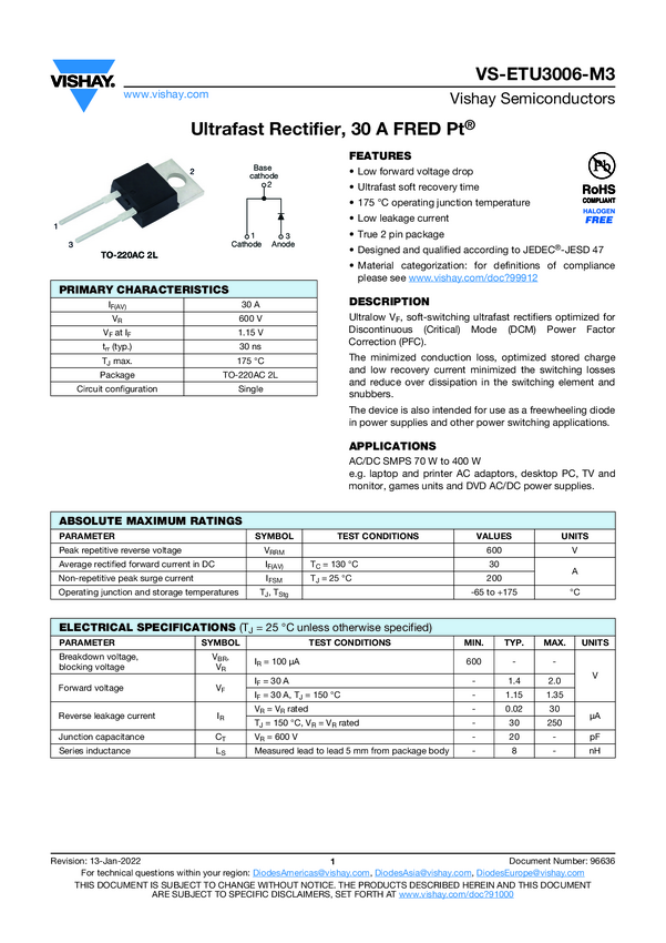 Ultrafast Rectifier, 30 A FRED Pt®
