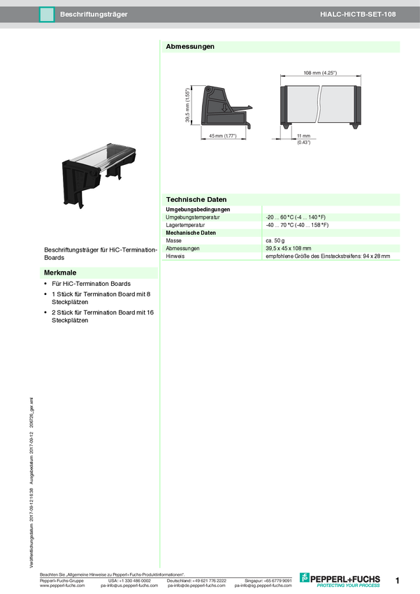 Pepperl+Fuchs HiALC-HiCTB-SET-108 206726 Nośnik etykiety 1 szt.