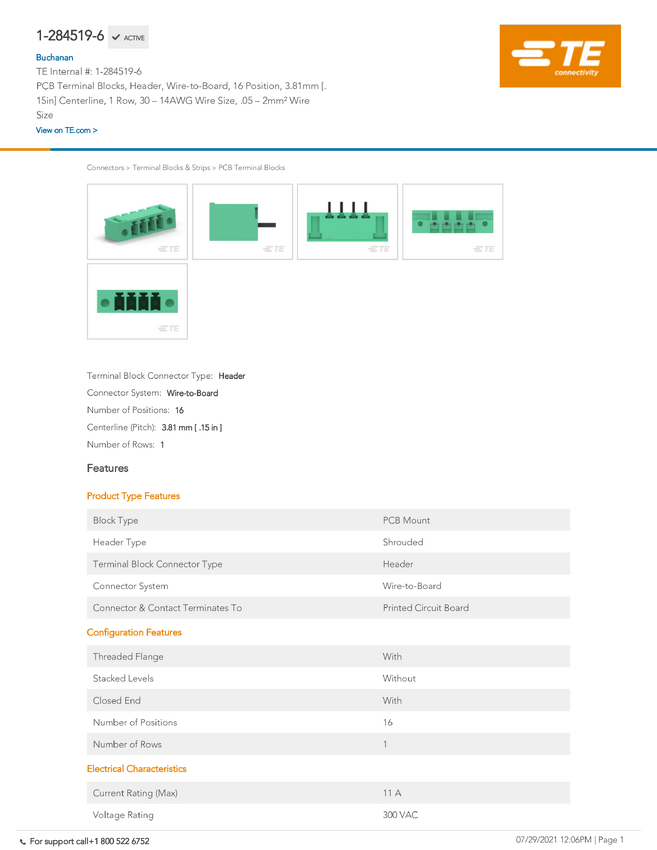 TE Connectivity 1-284519-6 TE AMP Eurostyle Terminal Blocks, 1 szt.