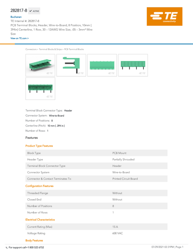 TE Connectivity 282817-8 TE AMP Eurostyle Terminal Blocks, 1 szt.