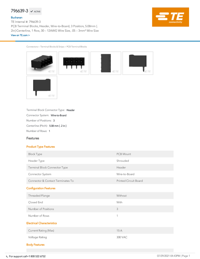 TE Connectivity 796639-3 TE AMP Eurostyle Terminal Blocks, 1 szt.