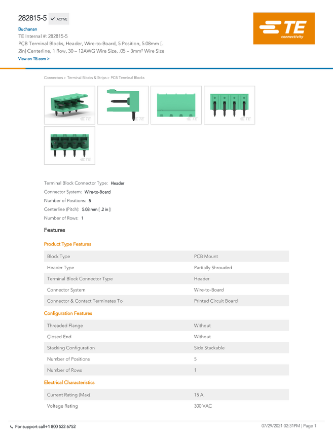 TE Connectivity 282815-5 TE AMP Eurostyle Terminal Blocks, 1 szt.