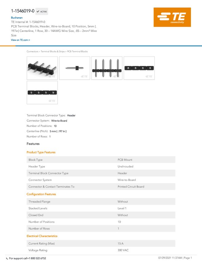 TE Connectivity 1-1546019-0 TE AMP Eurostyle Terminal Blocks, 1 szt.