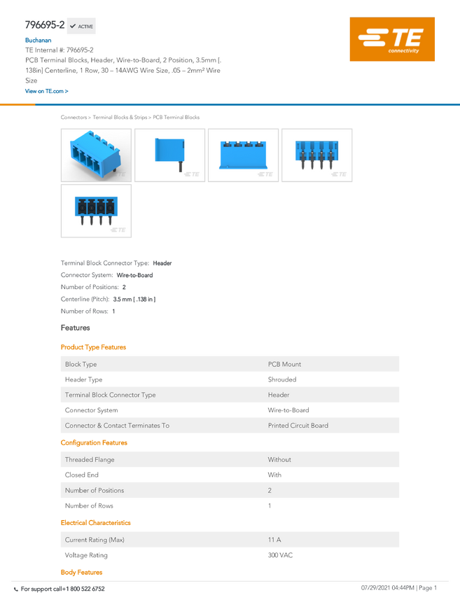TE Connectivity 1776149-2 TE AMP Eurostyle Terminal Blocks, 1 szt.
