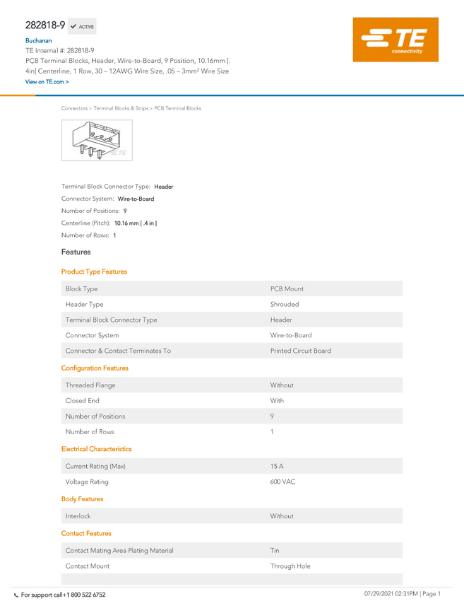 TE Connectivity 282818-9 TE AMP Eurostyle Terminal Blocks, 1 szt.