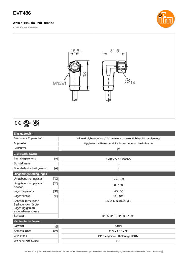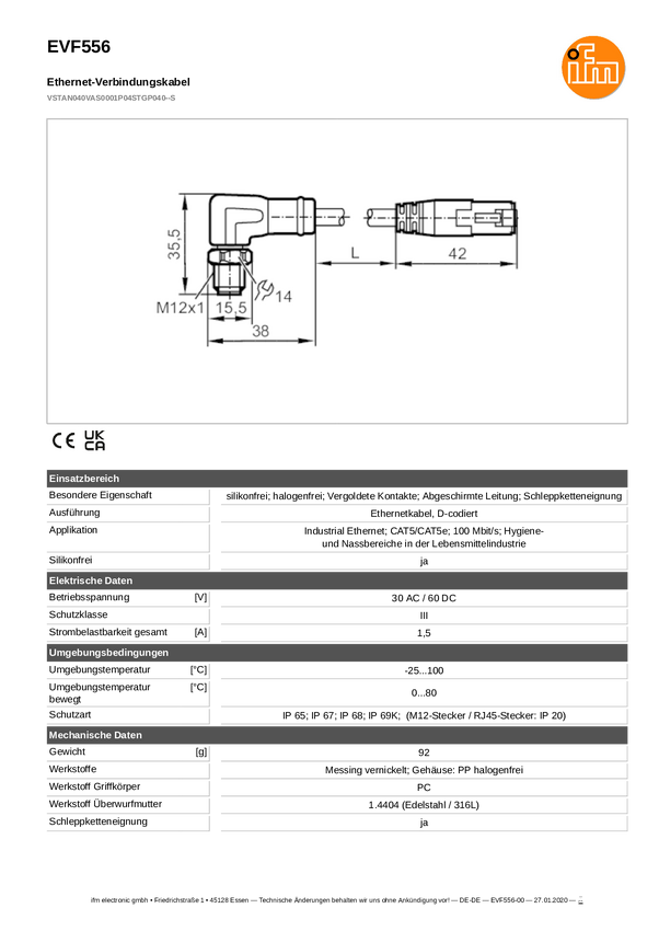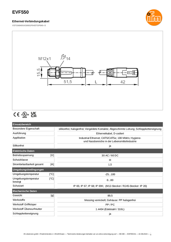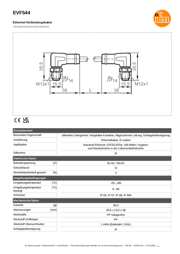 ifm Electronic EVF550 Linia połączenia EVF550, piny: 4, 1 m, 1 szt.