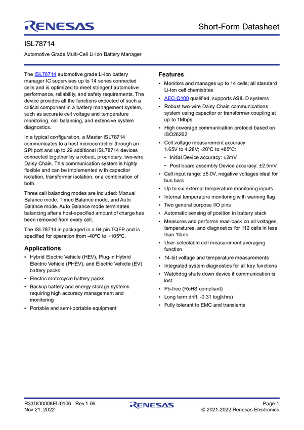 Automotive Grade Multi-Cell Li-Ion Battery Manager Evaluation Kit
