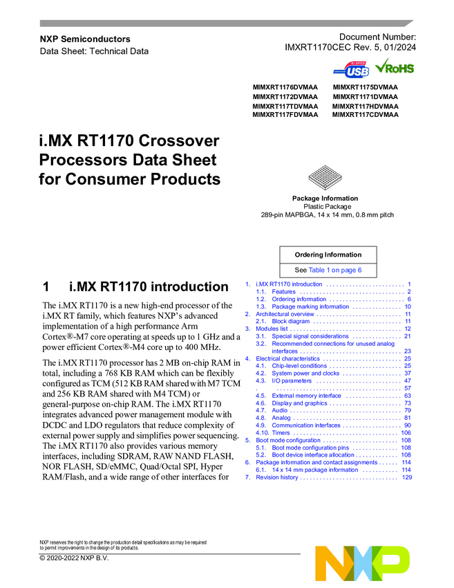 i.MX RT700 Crossover MCU with Arm® Cortex®-M33, NPU, DSP and GPU Cores