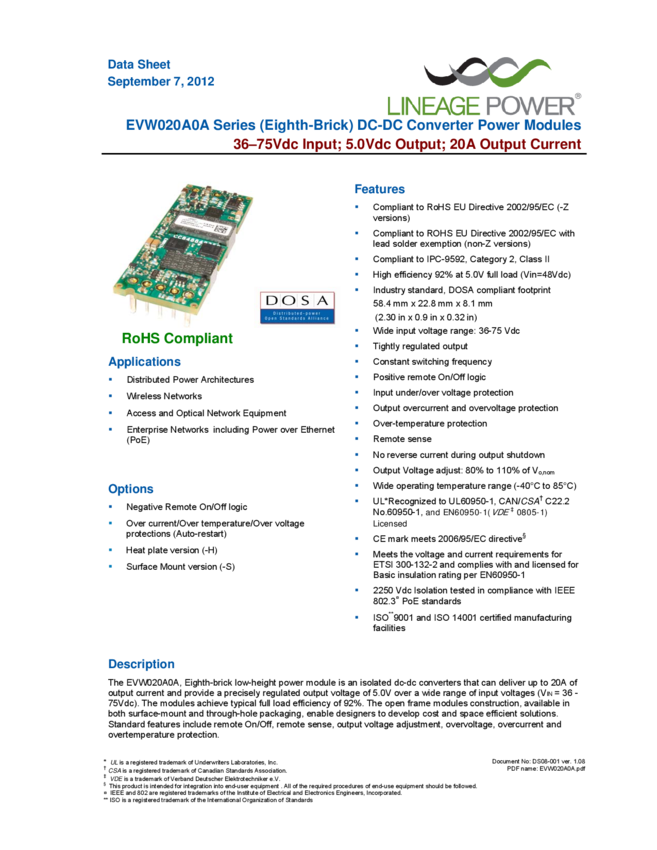 Module DC-DC 1-OUT 5V 20A 8-Pin 1/8-Brick