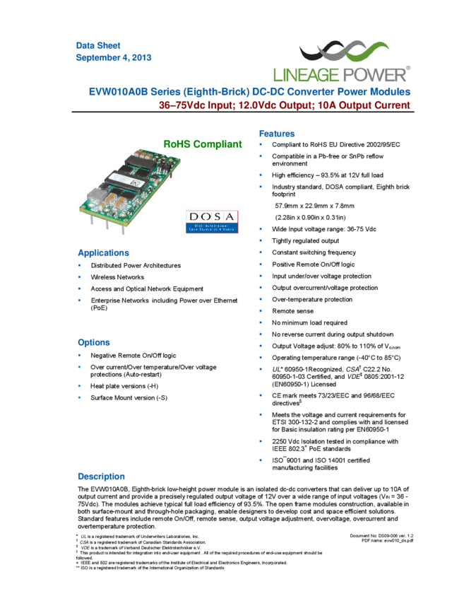 Module DC-DC 1-OUT 12V 10A 8-Pin 1/8-Brick Tray