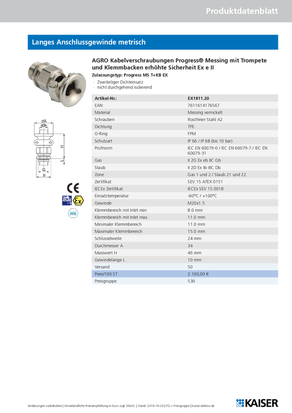 Kaiser Elektro EX1811.20 Dławnica kablowa Kaiser, od 8 mm, do 15 mm, M20, 1 szt.