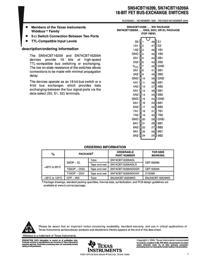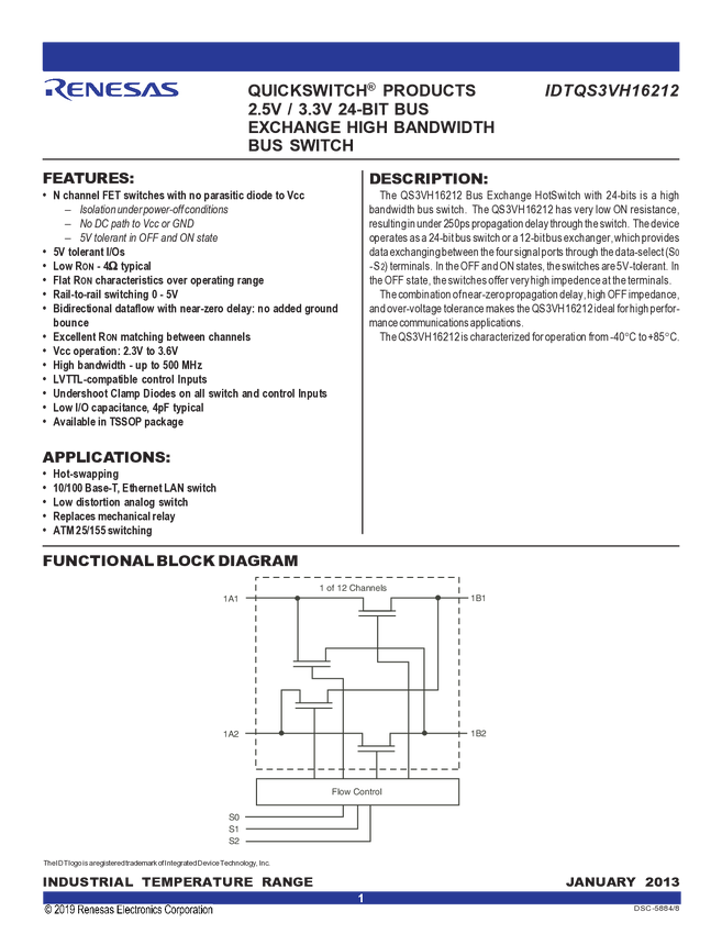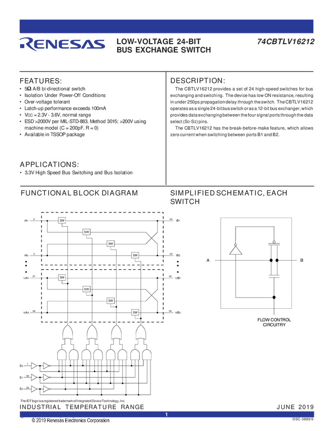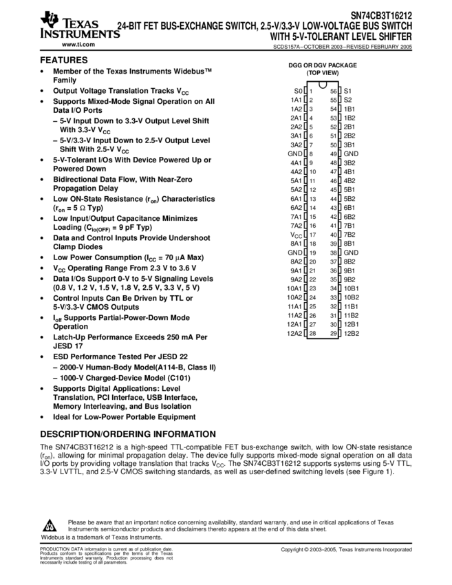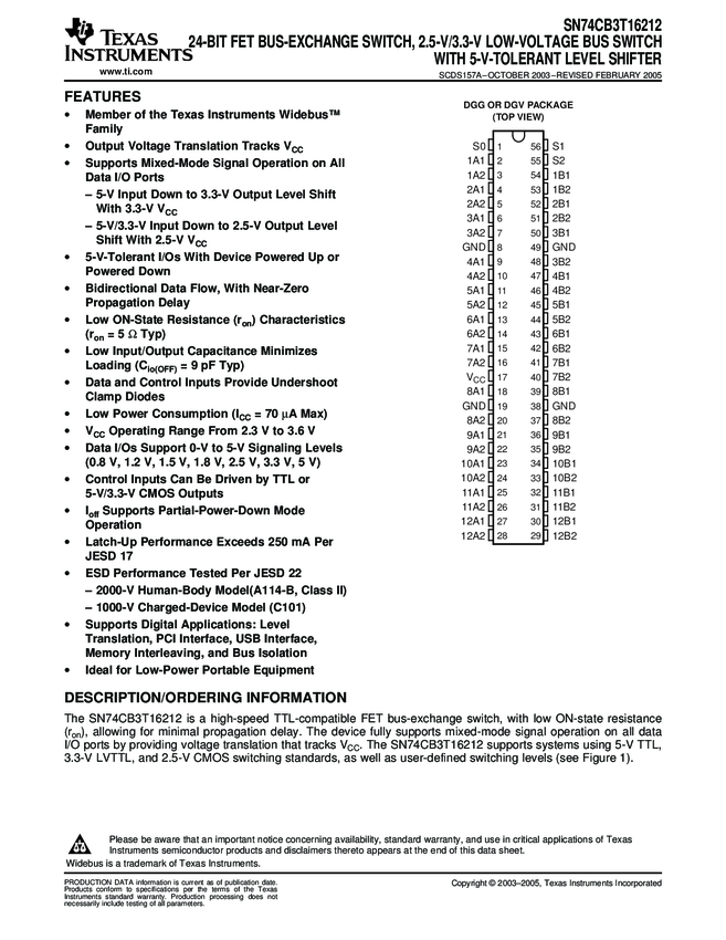 2.5V/3.3V 24-Bit Bus Exchange High Bandwidth Bus Switch