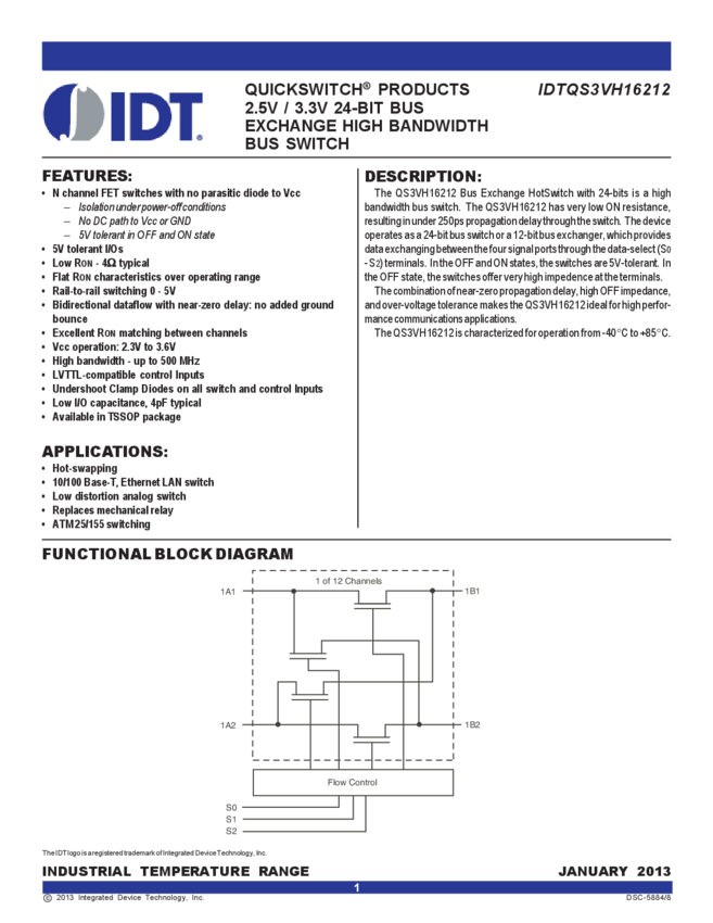 2.5V / 3.3V 24-Bit Bus Exchange High Bandwidth Bus Switch