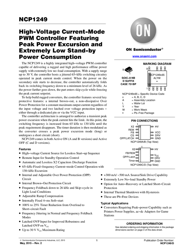 PWM Controller, Current Mode, for Offline Power Supplies Featuring Peak Power Excursion