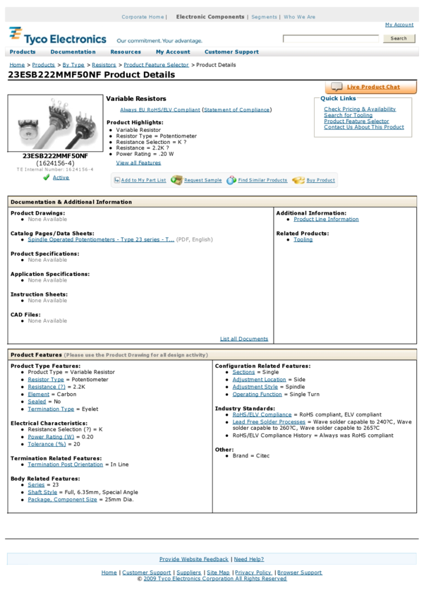 Res Carbon Film POT 2.2K Ohm 20% 1/5W 1Turn 6.35mm (60.7 X 20.4 X 25.2mm) Eyelet Panel Mount