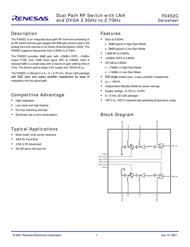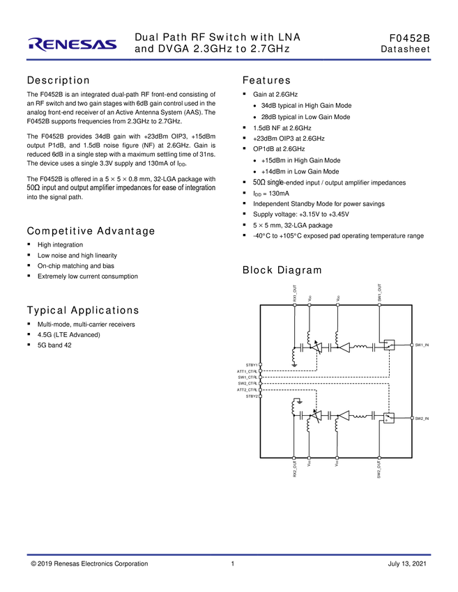 Evaluation Board for F0452B Switch / LNA