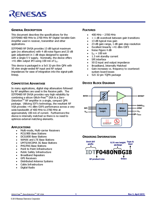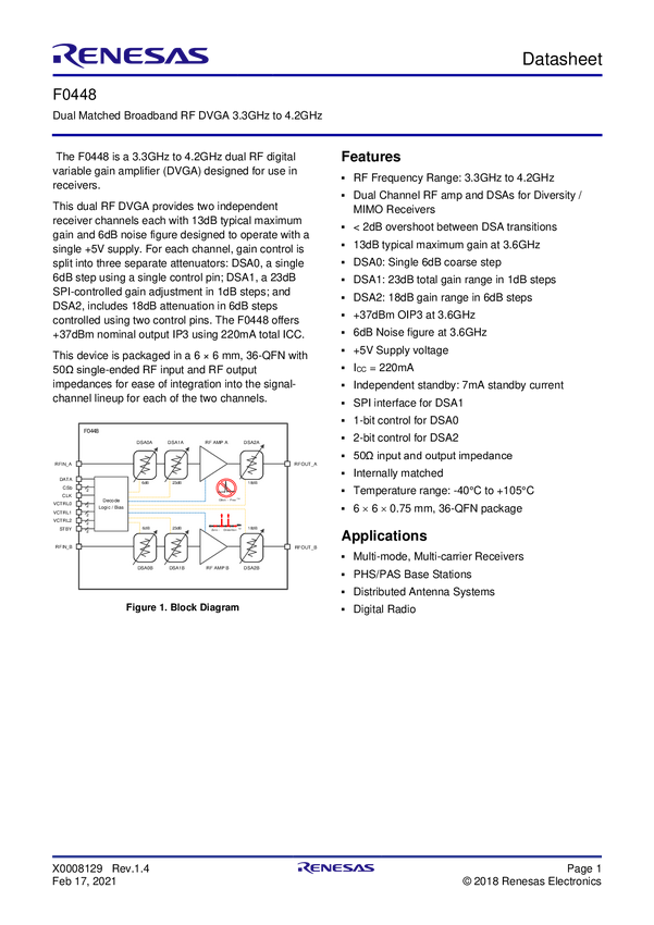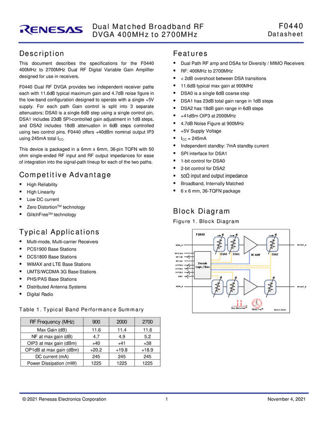 Dual Matched Broadband RF DVGA - 0.6GHz to 2.7GHz