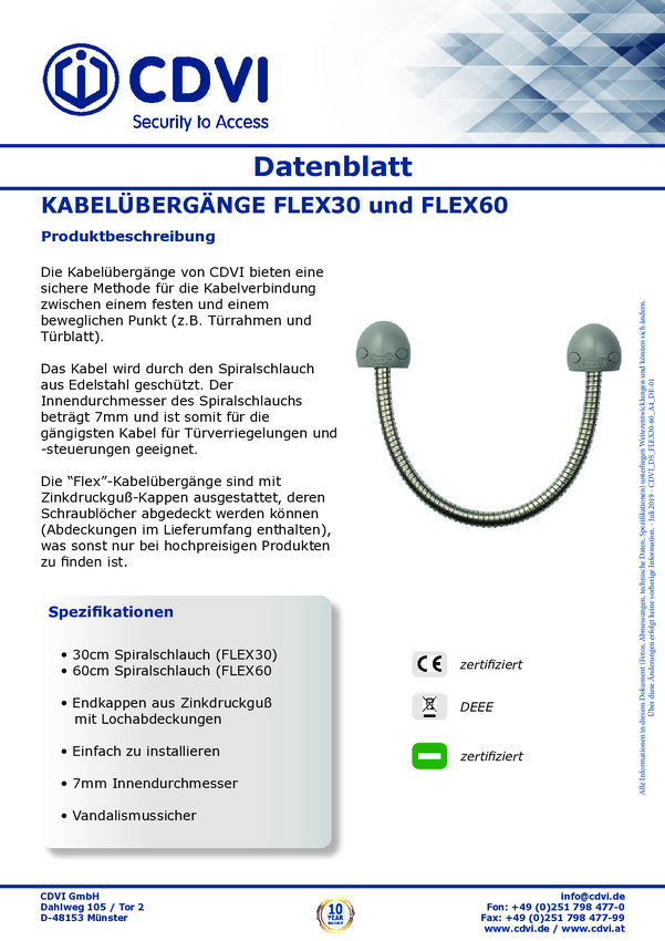 Przejście kablowe CDVI Security FLEX60 F0524000015, 1 szt.