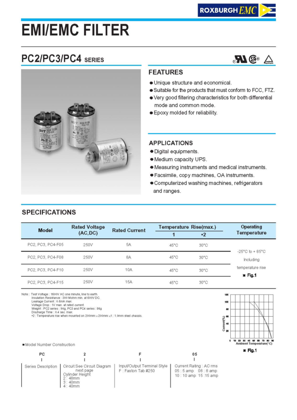 Power Line Filter 50Hz/60Hz 5A 250VAC Tab Screw Mount