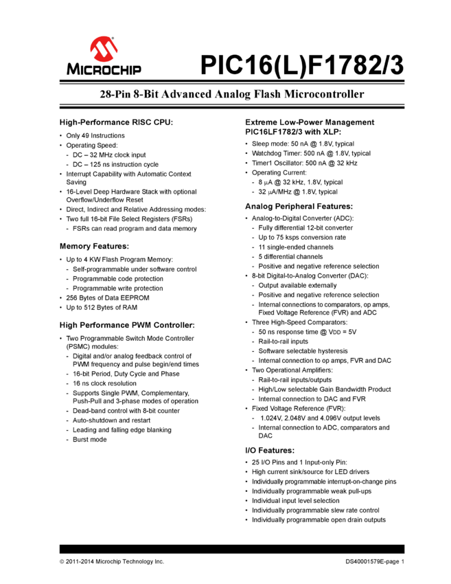 PIC16(L)F1788/9 28-Pin 8-Bit Advanced Analog Flash MCUs (09/04/2014)
