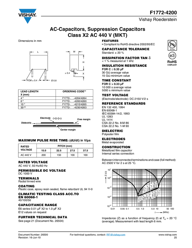 AC-Capacitors, Suppression Film Capacitors Class X2 AC 440 V (MKT) Radial Type