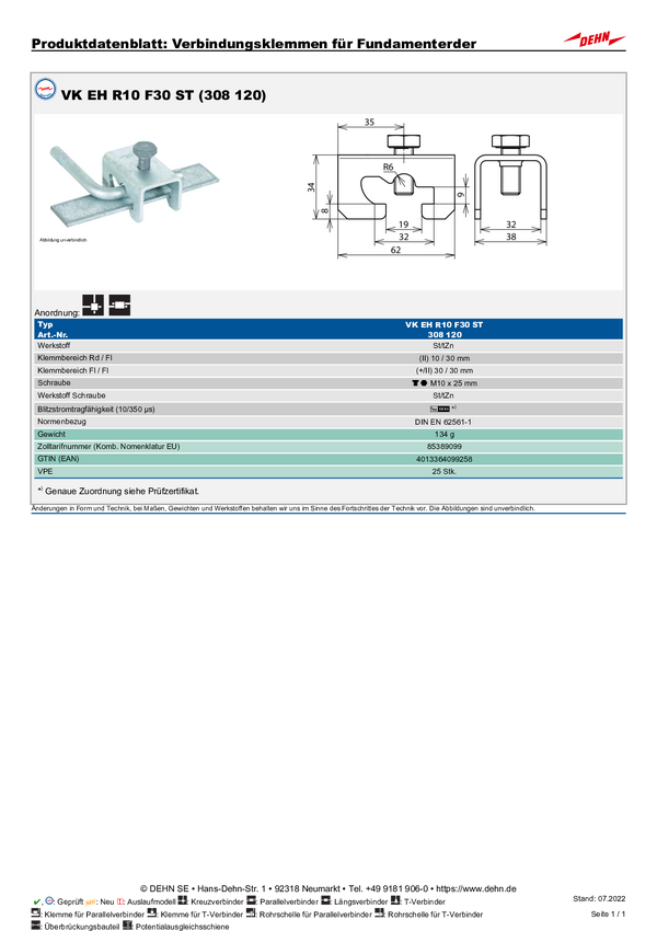 DEHN 308120 VK EH R10 F30 ST Zacisk połączeniowy