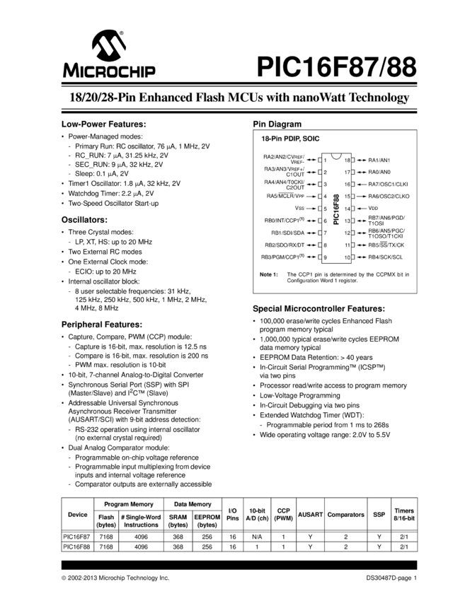 PIC16F87/88 Datasheet (02/05/2013)