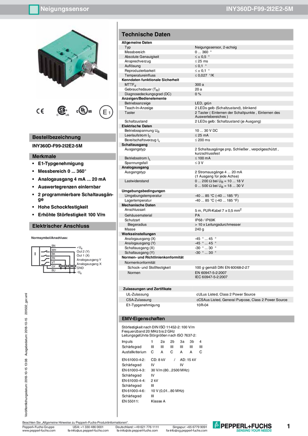 Pepperl+Fuchs Inklinometr INY360D-F99-2U2E2-5M 206772 kabel