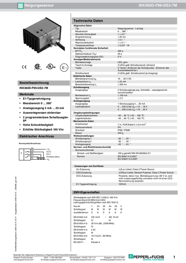 Pepperl+Fuchs Inklinometr INX360D-F99-I2E2-7M 209308 kabel