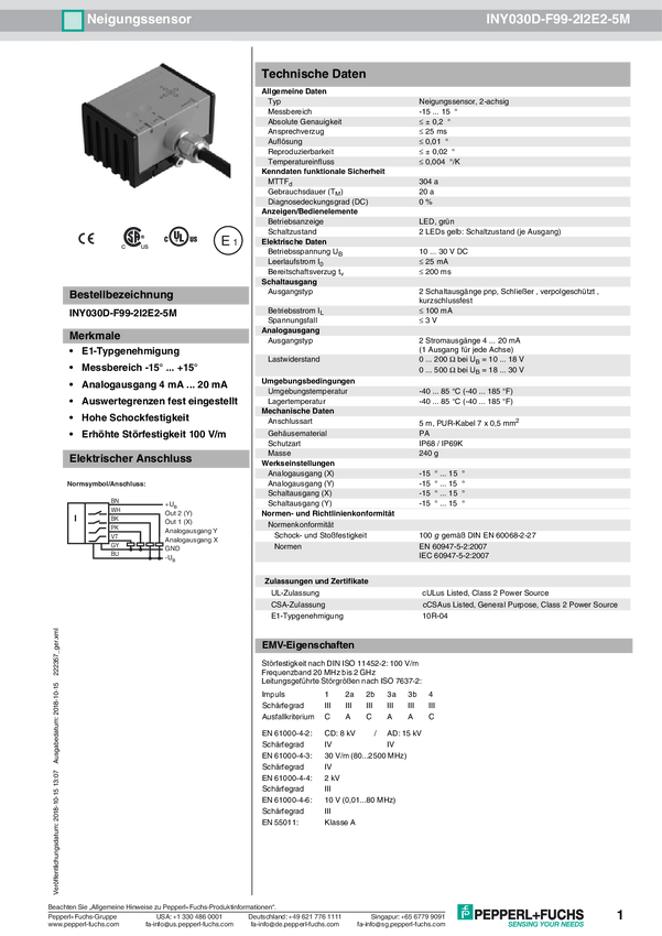Pepperl+Fuchs Inklinometr INY030D-F99-2I2E2-5M 222357 kabel