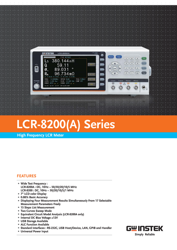 Mostek pomiarowy LCR cyfrowy GW Instek LCR-8205A 01CR8205A0GT, kalibracja fabryczna (bez certyfikatu)