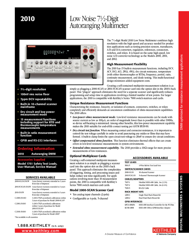 Multimetr stołowy cyfrowy Tektronix 2010/E 2010/E, CAT II, AC, kalibracja fabryczna (bez certyfikatu)