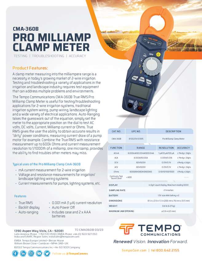 Miernik cęgowy cyfrowy Tempo Communications 55504706 55504706, CAT III 600 V, CAT IV 300 V, AC/DC, kalibracja fabryczna