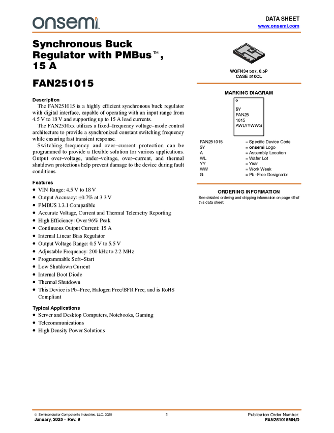 15A Synchronous Buck Regulator with PMBUS