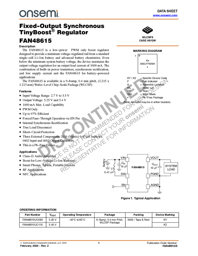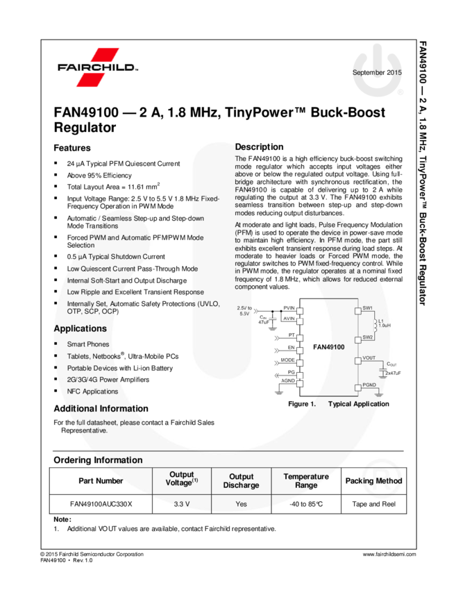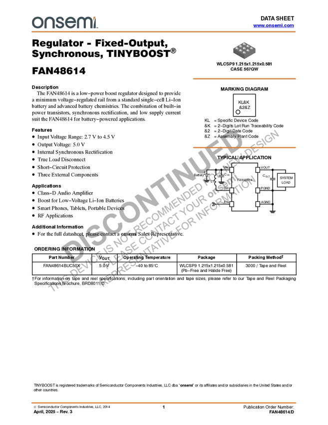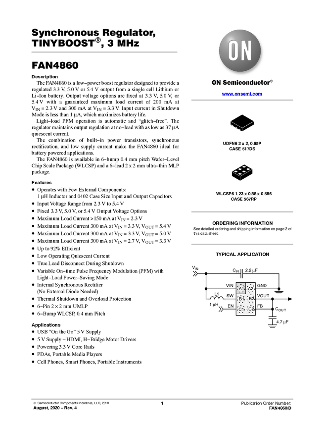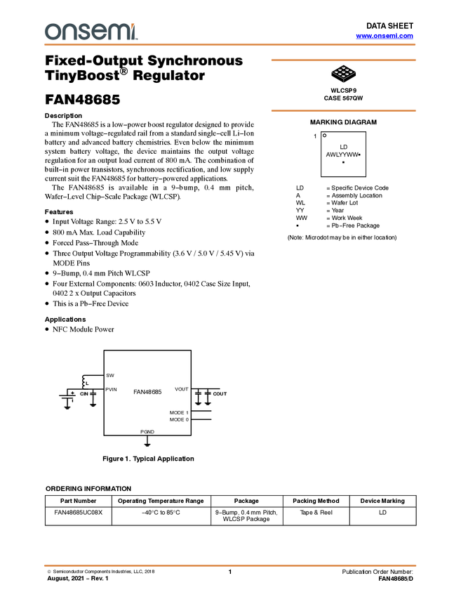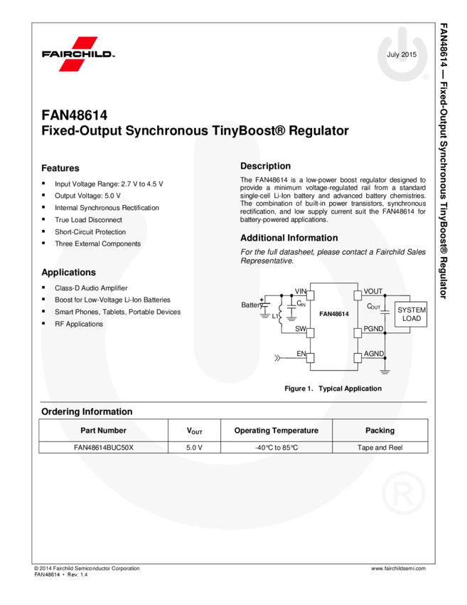 Fixed-Output Synchronous TinyBoost<sup>® Regulator