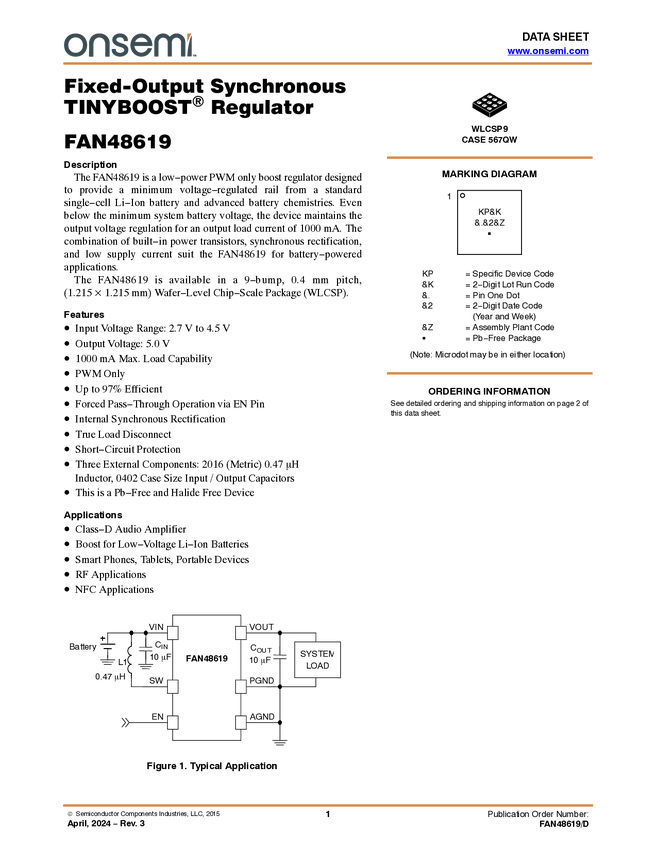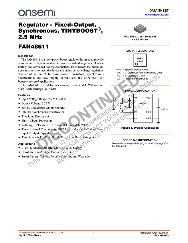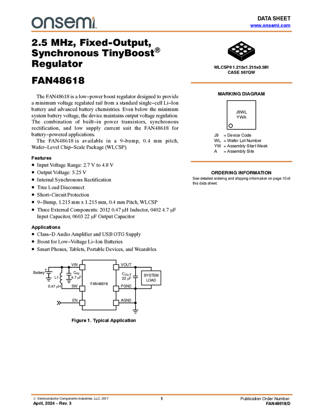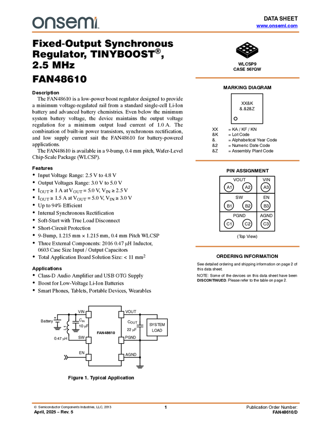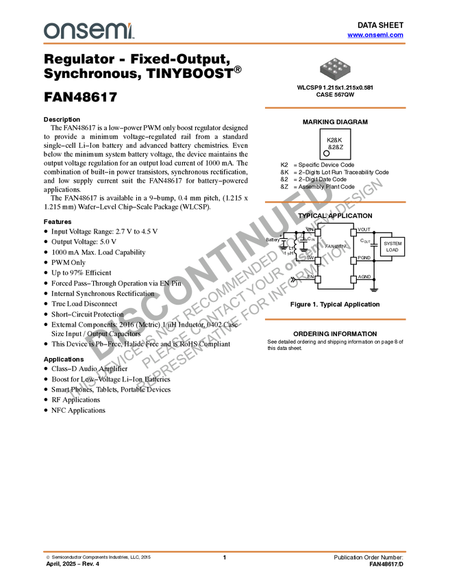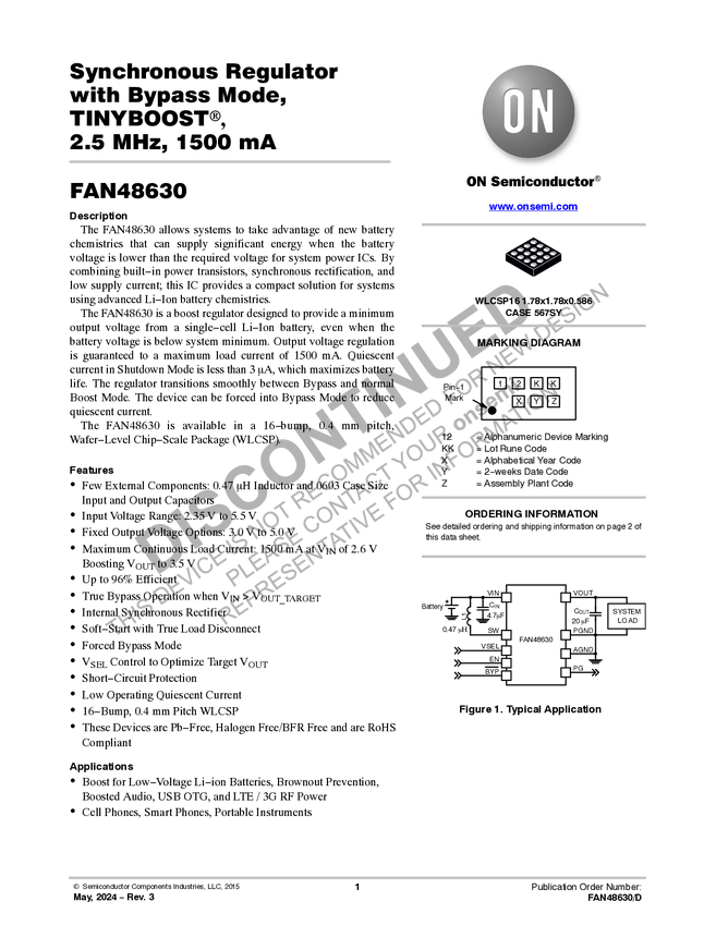 Fixed-Output Synchronous TinyBoost<sup>® Regulator