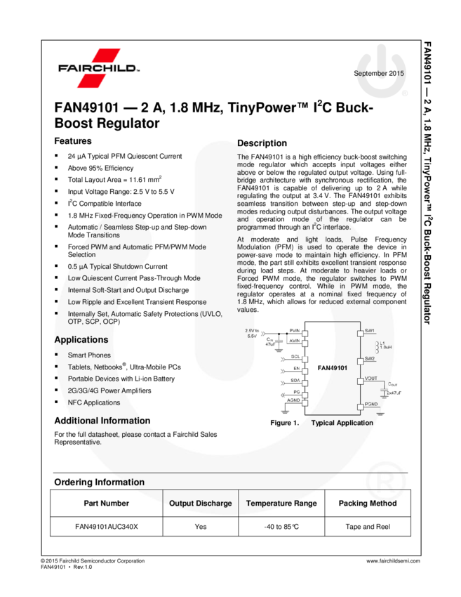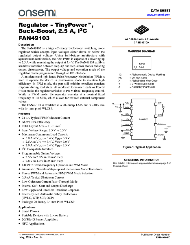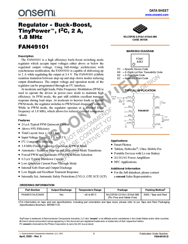 Buck-Boost Regulator, 2 A, 1.8 MHz, TinyPower™ I<sup>2C