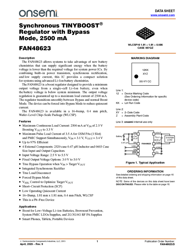 2500 mA, Synchronous TinyBoost® Regulator with Bypass Mode